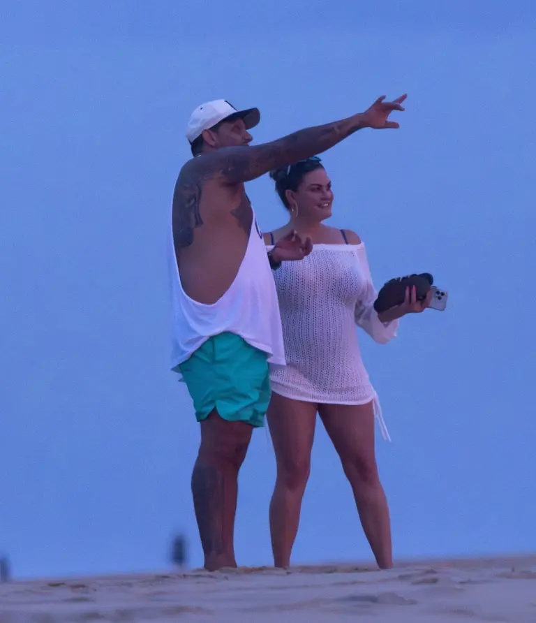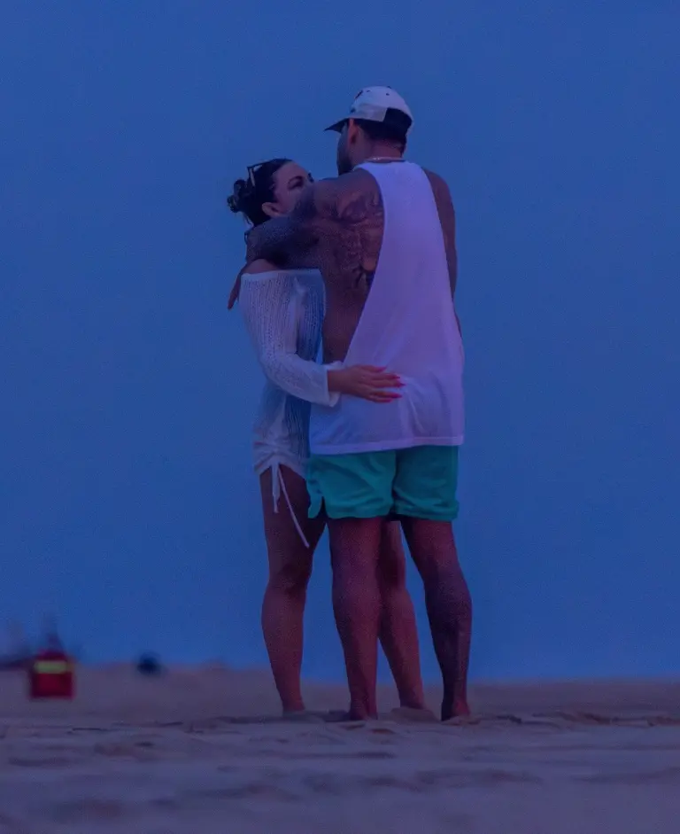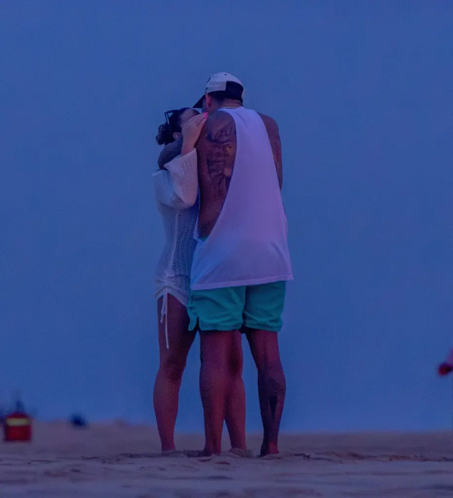 The couple did not shy away from public displays of affection. Photos showed them kissing, posing for sunset selfies, and embracing as they enjoyed the beach setting.