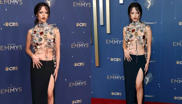 Jenna’s look became the talk of the night, in just a fraction of a second, as she effortlessly nailed the trend of an almost naked dress. It was a few days ago, when Margot Robbie also slipped into a bejewelled naked dress, and now that Jenna donned the same, she left us going gaga. For her arrival at the Emmys 2025, Jenna donned a transparent dress, covered with jewels on the front and back. The massive stone-studded jewels perfectly complemented the transparent, body-hugging top, which Jenna paired with a sultry black skirt featuring a sleek side slit.