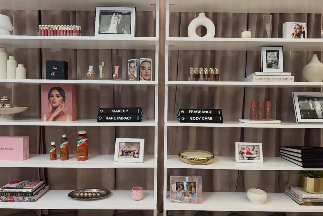 Fans also got a glimpse of a framed black-and-white wedding photo placed on a shelf behind Gomez. The stunning shot showed her kissing Blanco while wearing one of her three custom Ralph Lauren wedding gowns. The setting appeared to be either their home or Gomez’s Rare Beauty office, as makeup products and family photos, including one with her younger sister Gracie, could be spotted in the background.