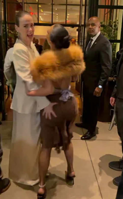 The unexpected moment happened outside The Whitby Hotel, where the cast of the new Ryan Murphy legal drama was posing for photographers. Cameras captured Paulson grinning as she repeatedly patted Kim’s famous curves, while Kim smiled, laughed, and eventually took Sarah’s hand before the two headed inside together.