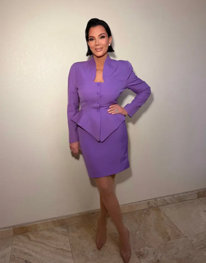 The 69-year-old Kardashian-Jenner matriarch turned heads after sharing a photo on Instagram wearing a striking bright-purple Thierry Mugler suit, complete with a mini skirt and sharp-shouldered blazer. The archival look comes straight from Mugler’s Fall/Winter 1998 collection, a golden era for ultra-structured power dressing.