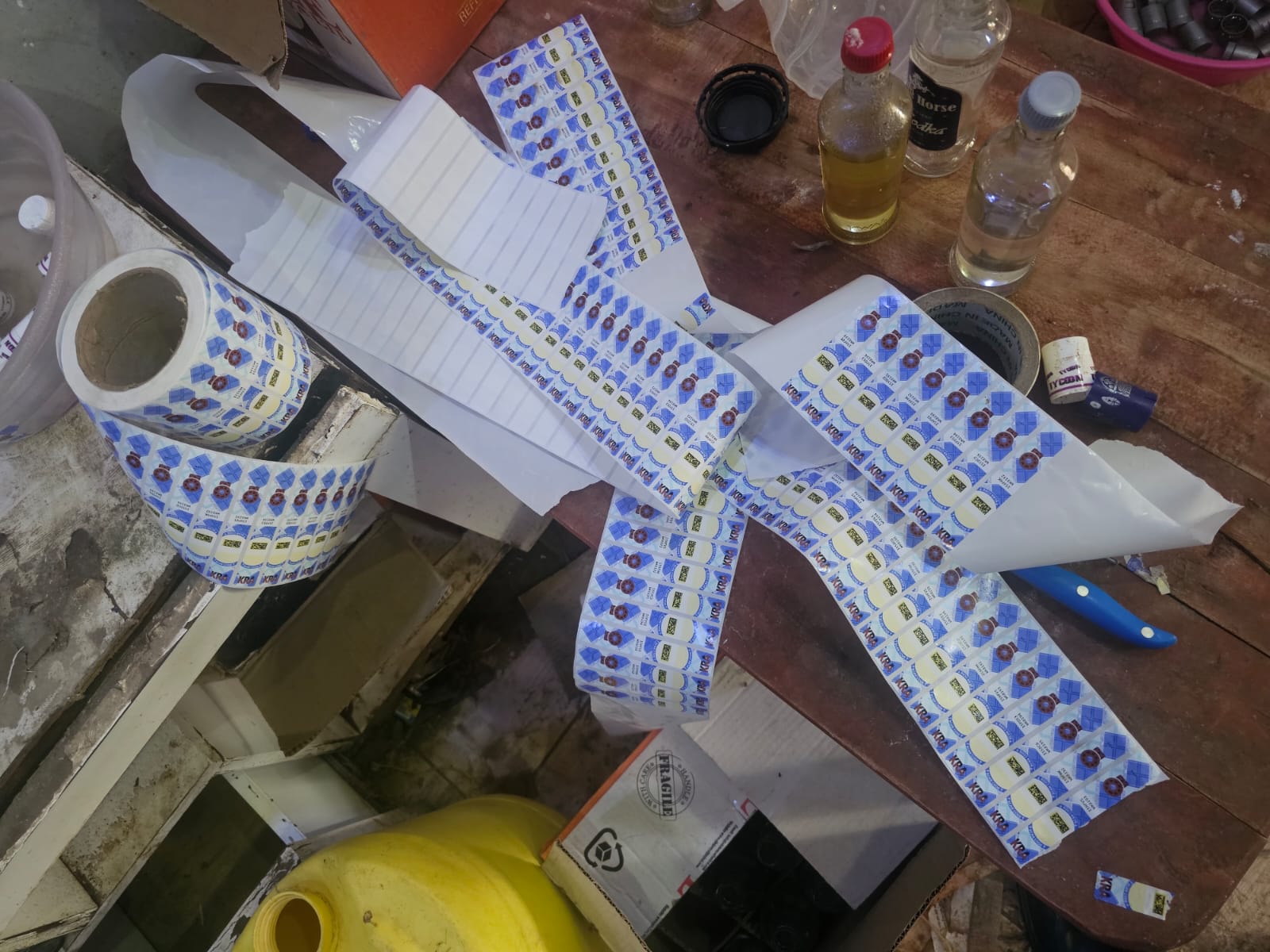 Also recovered during the raid were food colouring agents used to make the alcohol look genuine, thousands of empty 250ml bottles of different brands, plastic caps, labelling and sealing equipment, and fake Kenya Revenue Authority (KRA) excise stamps. More than 200 cartons of ready-for-sale counterfeit alcohol were also seized.